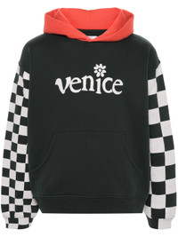 DARK GREEN/BURNT ORANGE/WHITE COTTON BLEND JERSEY TEXTURE COLOUR-BLOCK PANELLED DESIGN 'VENICE'-PRINT TO THE FRONT CHECKERBOARD PRINT AT THE SLEEVES CRACKED EFFECT SLOGAN PRINT TO THE REAR CONTRASTING CLASSIC HOOD DROP SHOULDER LONG SLEEVES WITH RIBBED CUFFS FRONT POUCH POCKET FLEECE LINING RIBBED HEM WHEN BUYING THIS UNISEX ITEM, KEEP IN MIND THAT IT IS GRADED IN STANDARD MEN'S SIZING.
