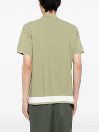 GREEN COTTON KNITTED CONSTRUCTION STRIPE DETAILING CLASSIC COLLAR FRONT BUTTON FASTENING SHORT SLEEVES SHORT SIDE SLITS STRAIGHT HEM