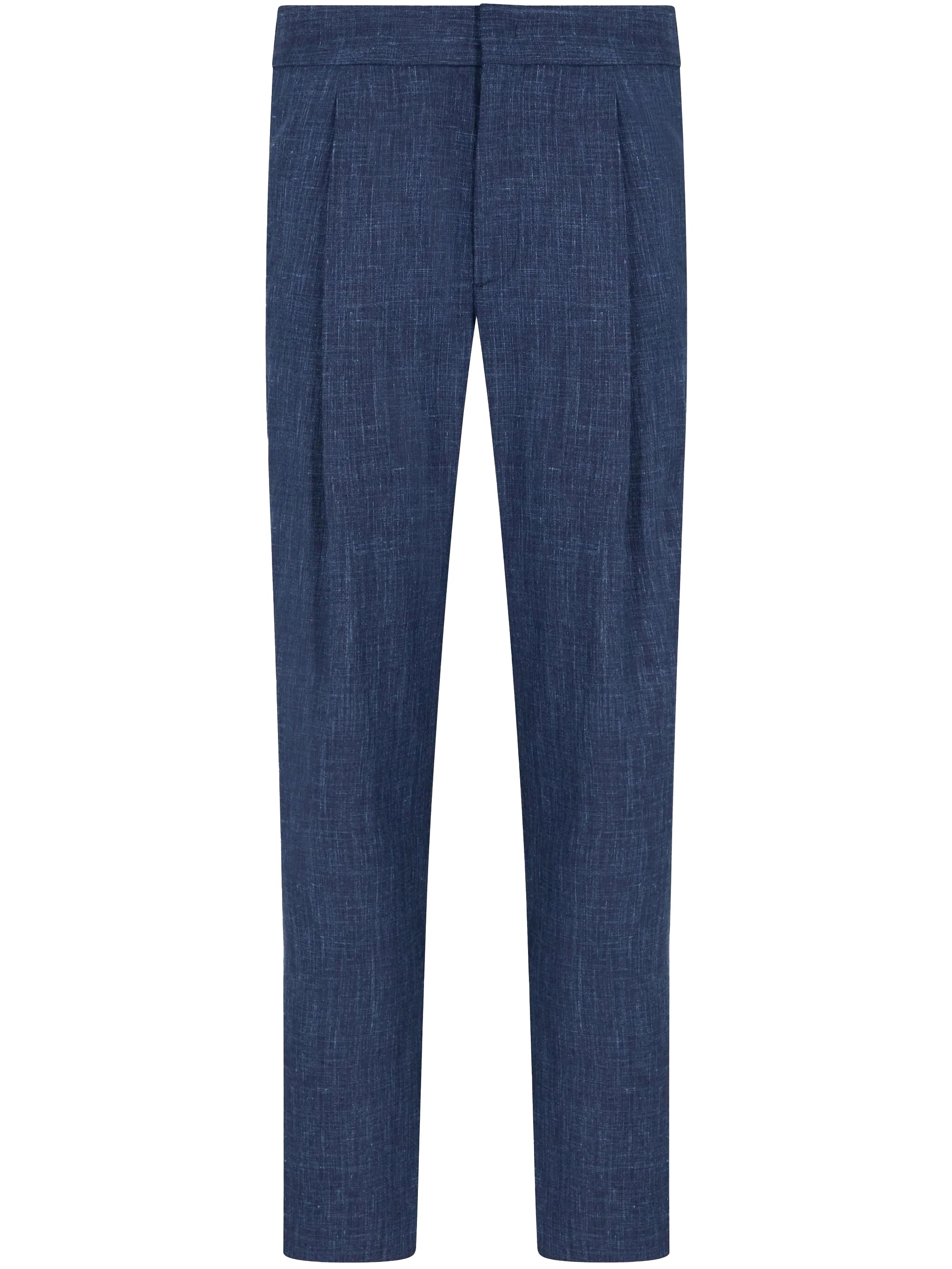 WOOL, SILK AND LINEN CANVAS SINGLE-PLEAT TROUSERS