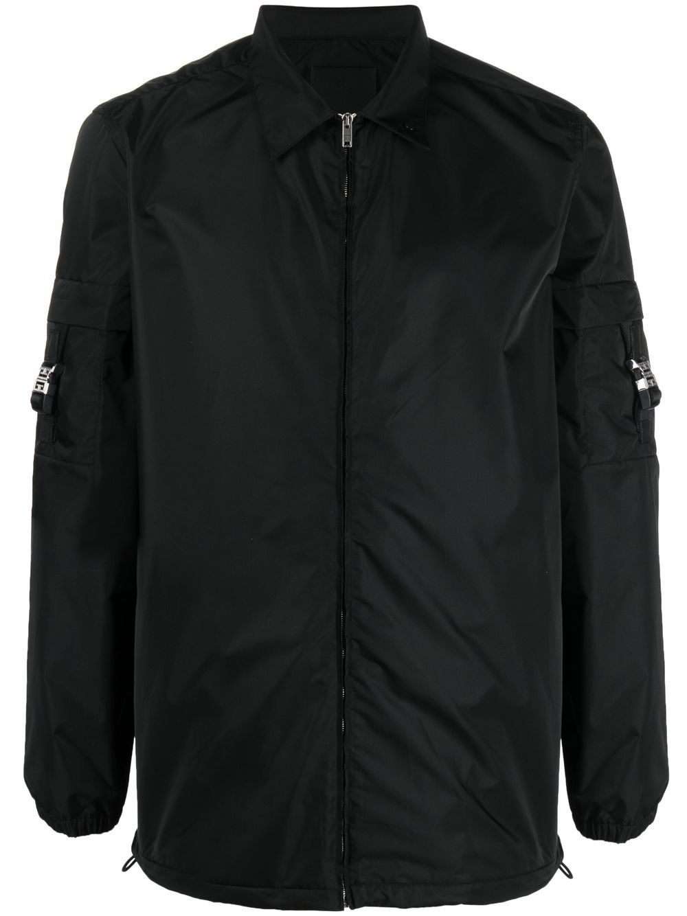 4G BUCKLED-POCKET OVERSHIRT FROM GIVENCHY (VIP) FEATURING BLACK, SIGNATURE 4G MOTIF, CLASSIC COLLAR, FRONT ZIP FASTENING, BUCKLE-STRAP FASTENING, SLEEVE FLAP POCKET, LONG SLEEVES, ELASTICATED CUFFS AND DRAWSTRING HEM.