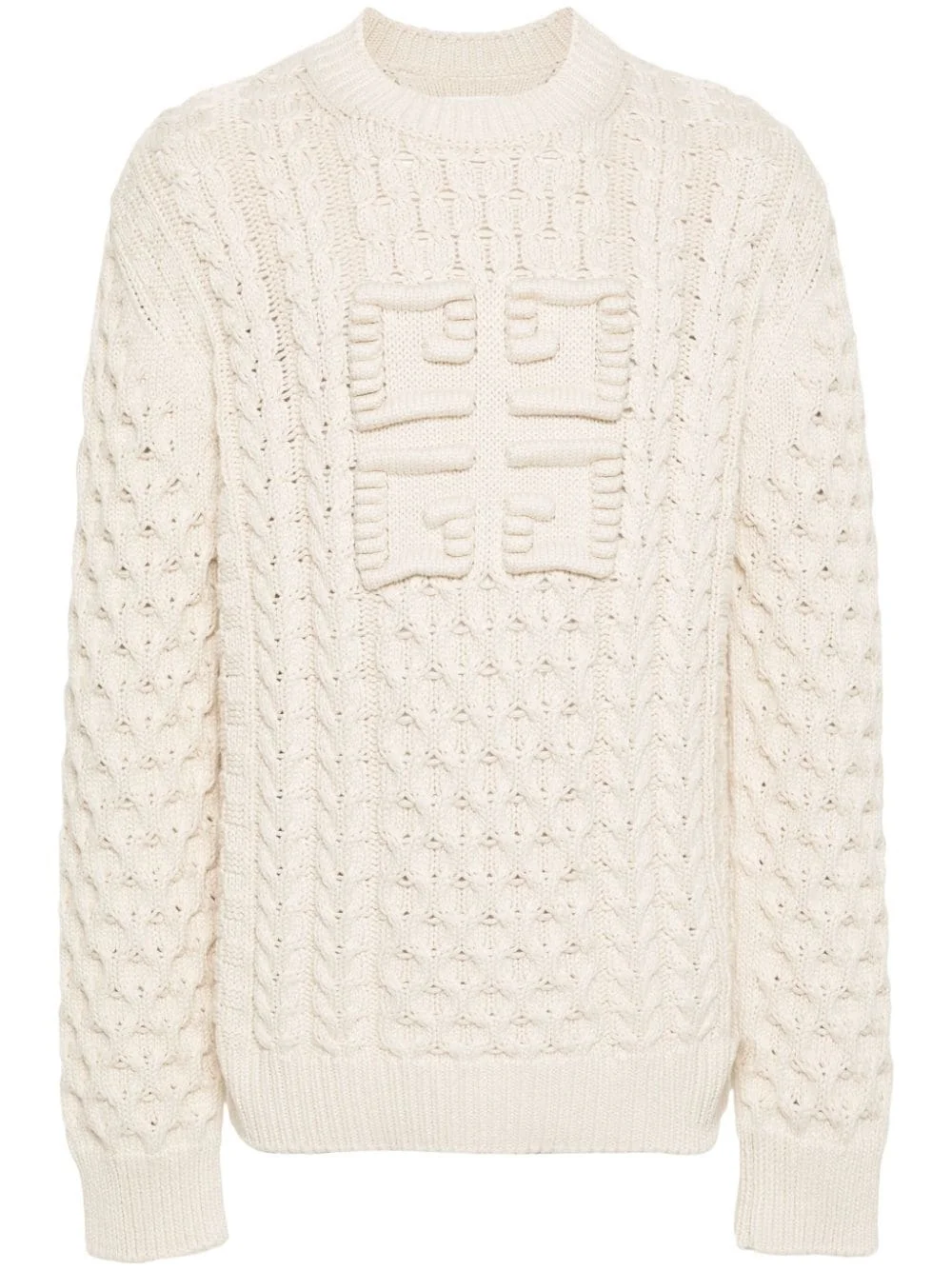 ECRU COTTON BLEND CHUNKY CABLE KNIT CREW NECK LONG SLEEVES RIBBED CUFFS AND HEM SIGNATURE 4G MOTIF STRAIGHT HEM