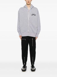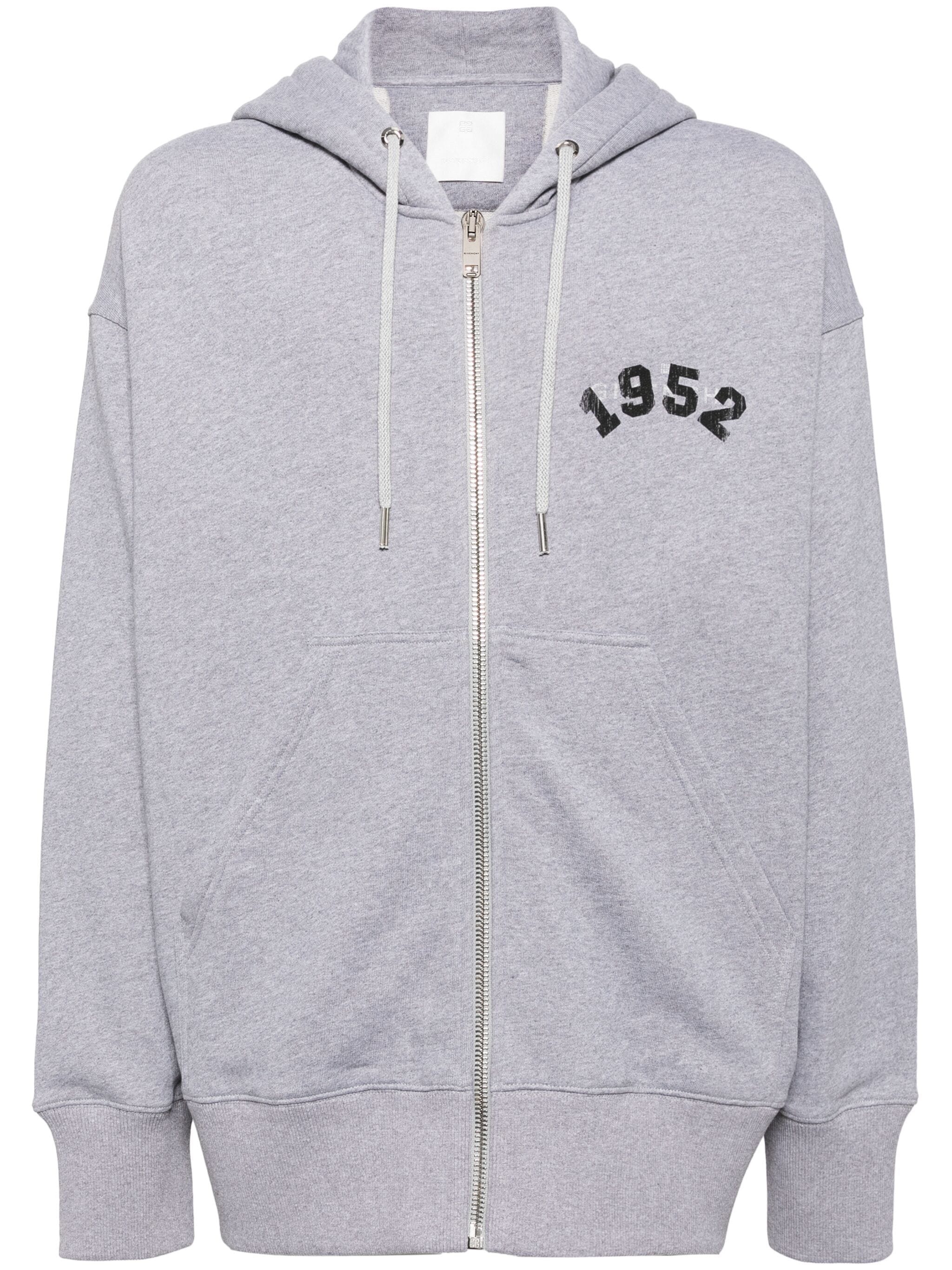 LIGHT GREY COTTON JERSEY TEXTURE GRAPHIC PRINT AT THE CHEST GRAPHIC PRINT TO THE REAR DRAWSTRING HOOD FRONT ZIP FASTENING TWO FRONT POUCH POCKETS DROP SHOULDER LONG SLEEVES RIBBED CUFFS AND HEM STRAIGHT HEM