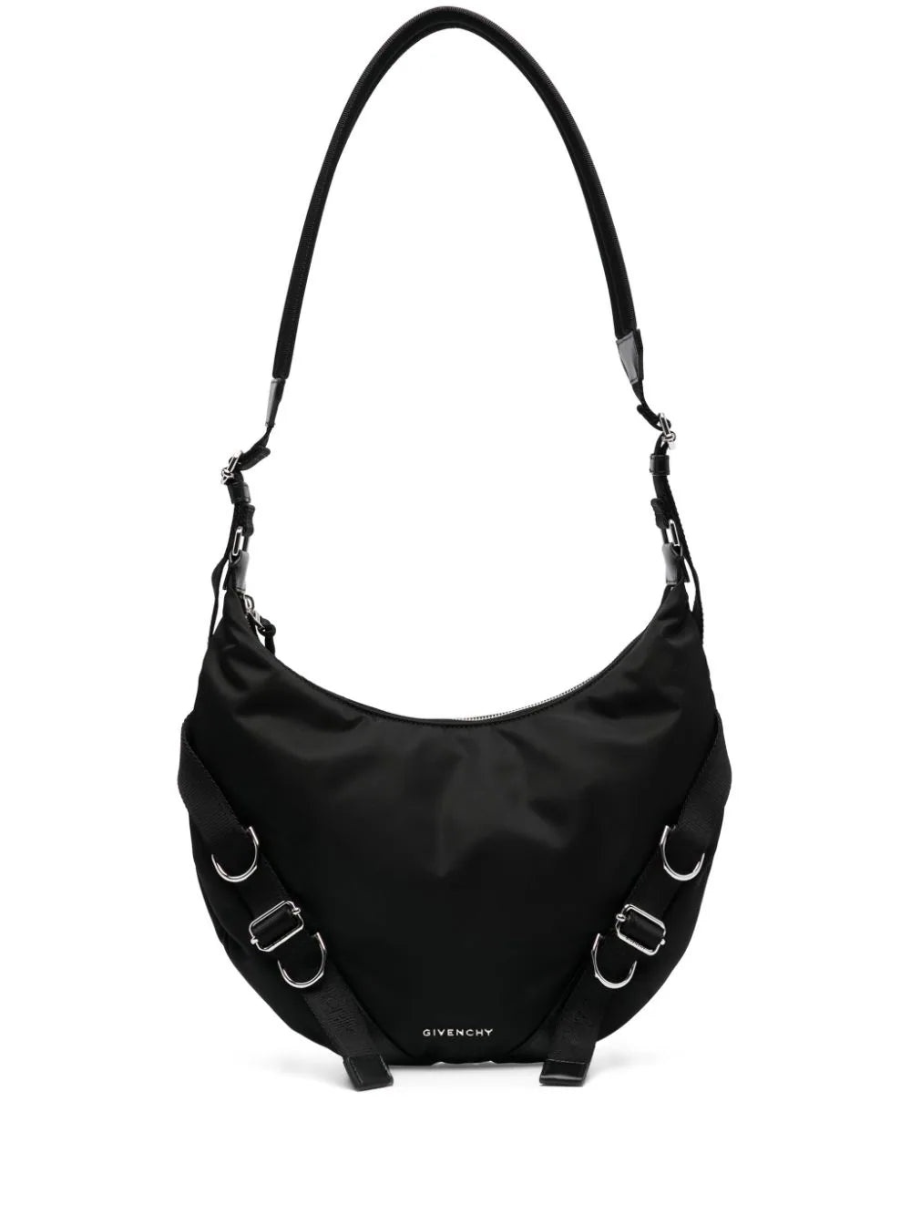 BLACK SILVER-TONE LOGO LETTERING DECORATIVE BUCKLE DETAILING STRAP DETAILING D-RING FINDINGS BRANDED ZIP PULLER ADJUSTABLE SHOULDER STRAP FULL LINING INTERNAL LOGO PATCH INTERNAL PATCH POCKET MAIN COMPARTMENT LOGO-ENGRAVED SILVER-TONE HARDWARE TOP ZIP FASTENING THIS PIECE COMES COMPLETE WITH A PROTECTIVE DUST BAG.