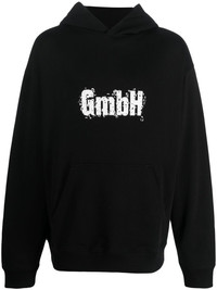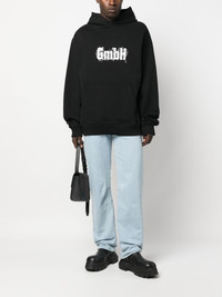 LOGO-PRINT ORGANIC-COTTON HOODIE FROM GMBH FEATURING JET BLACK, ORGANIC COTTON, SOFT JERSEY, LOGO PRINT TO THE FRONT, DROP SHOULDER, CLASSIC HOOD, LONG SLEEVES, FRONT POUCH POCKET AND RIBBED CUFFS AND HEM.