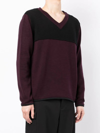 V-NECK KNIT JUMPER FROM GR10K FEATURING COTTON, DARK PURPLE, KNITTED CONSTRUCTION, V-NECK AND LONG SLEEVES.