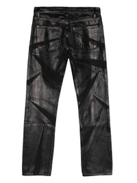 BLACK COTTON DENIM METALLIC FINISH ALL-OVER FOIL PRINT LOW-RISE BELT LOOPS FRONT BUTTON AND ZIP FASTENING CLASSIC FIVE POCKETS STRAIGHT LEG