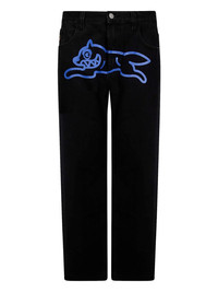 THESE BLACK JEANS SHOWCASE CONTEMPORARY DESIGN THROUGH DISTINCTIVE GRAPHIC STORYTELLING. THE RUNNING DOG GRAPHIC PRINT SERVES AS A STRIKING VISUAL STATEMENT, WHILST LOGO PATCHES PROVIDE SUBTLE BRAND AUTHENTICATION. CONSTRUCTED FROM PURE COTTON, THEY DELIVER BREATHABILITY AND COMFORT SUITABLE FOR EXTENDED WEAR. THE FIVE-POCKET DESIGN OFFERS PRACTICAL FUNCTIONALITY AND TIMELESS SILHOUETTE APPEAL, ENSURING VERSATILITY ACROSS CASUAL AND SMART-CASUAL CONTEXTS. A REFINED WARDROBE STAPLE THAT BALANCES GRAPHIC INTEREST WITH ENDURING STYLE, THESE JEANS TRANSITION EFFORTLESSLY FROM WEEKEND PURSUITS TO RELAXED PROFESSIONAL SETTINGS.