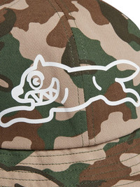 THE RUNNING DOG WOODLAND BUCKET HAT COMBINES A MULTICOLOUR CAMOUFLAGE PRINT WITH A BOLD GRAPHIC FRONT, OFFERING A DISTINCT BLEND OF STYLE AND FUNCTION. ITS DROPPED WIDE BRIM PROVIDES ENHANCED COVERAGE, IDEAL FOR OUTDOOR ACTIVITIES AND URBAN WEAR ALIKE. THIS HAT DELIVERS BOTH VISUAL APPEAL AND PRACTICAL PROTECTION UNDER VARIOUS CONDITIONS.