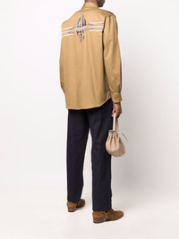 KHAKI YELLOW COTTON LOGO-PRINT COTTON SHIRT FROM ISABEL MARANT FEATURING LOGO PRINT TO THE REAR, CLASSIC COLLAR, FRONT BUTTON FASTENING, LONG SLEEVES, BUTTONED CUFFS, TWO CHEST WELT POCKETS AND CURVED HEM.