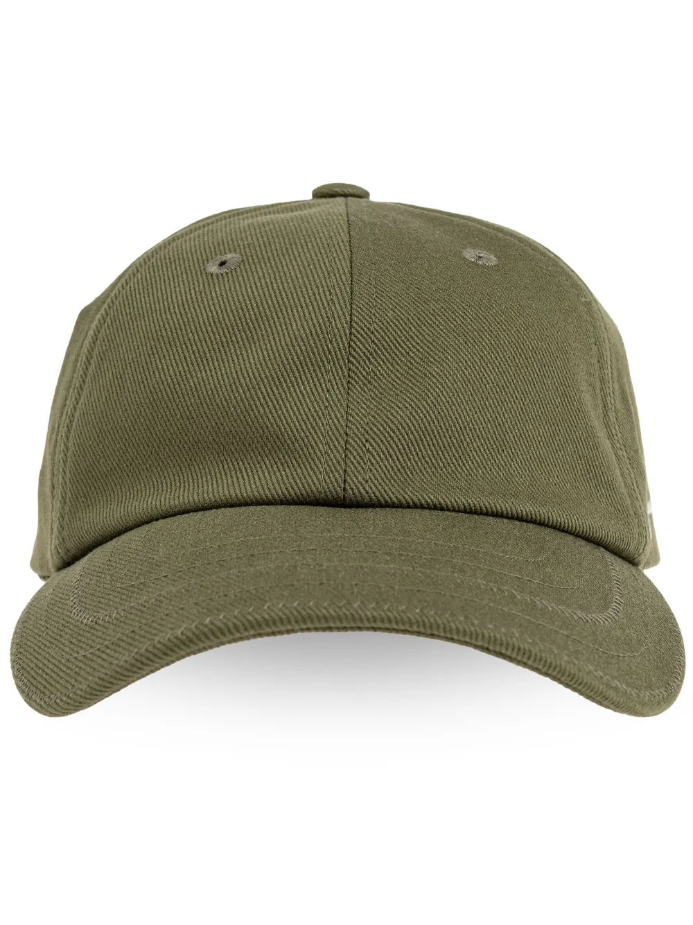 THIS MOSS GREEN COTTON CAP FEATURES A PULL-ON STYLE AND ADJUSTABLE STRAP TO THE REAR FOR A COMFORTABLE FIT. IT ALSO HAS A CURVED PEAK AND FABRIC-COVERED BUTTON AT THE CROWN. STAY COOL AND STYLISH WITH THIS VERSATILE ACCESSORY.