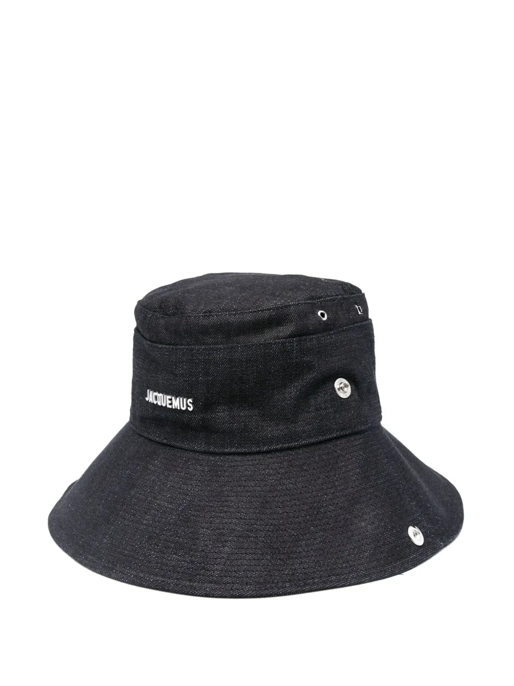 THE DE-NIMES BUCKET HAT FEATURES A NAVY BLUE PRESS-STUD FASTENING ADJUSTABLE NECK STRAP, A FLAT CROWN, AND A DROPPED WIDE BRIM. THIS STYLISH AND VERSATILE HAT PROVIDES A COMFORTABLE FIT AND PROTECTION FROM THE SUN, MAKING IT THE PERFECT ACCESSORY FOR ANY OUTDOOR ACTIVITY.