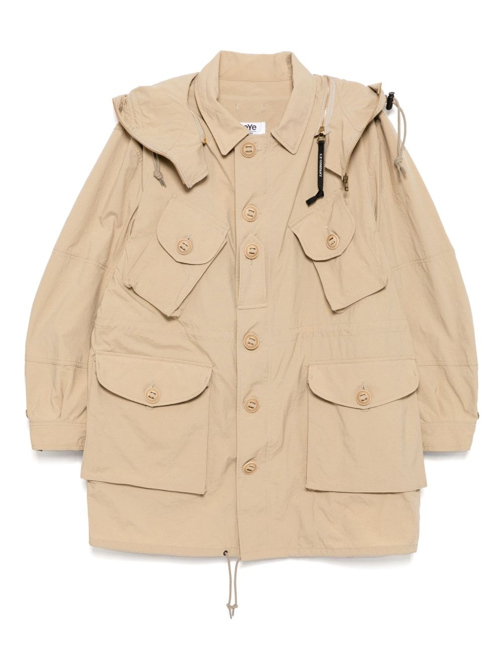 EXPERTLY CRAFTED WITH SAND BEIGE FABRIC, THIS MILITARY COAT FEATURES A FRONT BUTTON AND ZIP FASTENING FOR ADDED PROTECTION AGAINST THE ELEMENTS. THE DETACHABLE HOOD AND DRAWSTRING HEM OFFER VERSATILE STYLING OPTIONS, MAKING THIS COAT PERFECT FOR ANY WEATHER CONDITIONS. STAY PREPARED AND STYLISH WITH THIS MUST-HAVE WARDROBE STAPLE.