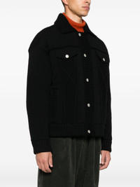 STAY WARM AND STYLISH WITH OUR KNITTED DOWN JACKET. THIS BLACK PADDED JACKET FEATURES A KNITTED CONSTRUCTION FOR ADDED COMFORT AND WARMTH. THE FRONT PRESS-STUD AND ZIP FASTENING, SPREAD COLLAR, AND RIBBED CUFFS AND HEM PROVIDE A SECURE FIT, WHILE THE QUILTED LINING AND DRAWSTRING HEM ENSURE MAXIMUM INSULATION. WITH TWO STUD-FASTENING CHEST POCKETS AND TWO SIDE SLIT POCKETS, YOU CAN KEEP YOUR ESSENTIALS CLOSE AT HAND. UPGRADE YOUR WINTER WARDROBE WITH THIS MUST-HAVE JACKET.