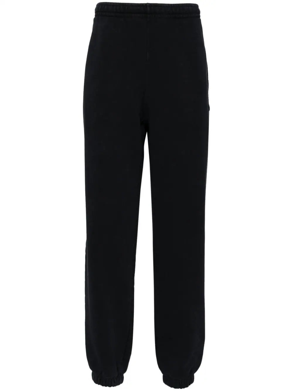 BLACK COTTON DRAWSTRING FASTENING WAIST APPLIQUE LOGO TWO SIDE SLASH POCKETS DRAWSTRING HEM STRAIGHT LEG