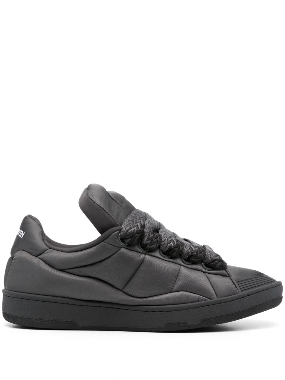 CURB XL NYLON SNEAKERS FROM LANVIN FEATURING BLACK, QUILTED, FRONT LACE-UP FASTENING, SIGNATURE MOTHER AND CHILD MOTIF, OVERSIZE TONGUE, BRANDED HEEL COUNTER, BRANDED LEATHER INSOLE AND FLAT RUBBER SOLE.