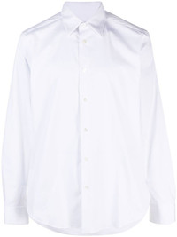 LONG-SLEEVE SLIM-CUT SHIRT FROM LANVIN FEATURING WHITE, STRETCH-COTTON, MOTHER-OF-PEARL BUTTON FASTENING, CLASSIC COLLAR, LONG SLEEVES AND CURVED HEM.