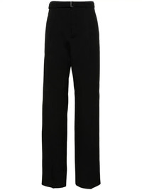 BLACK WOOL TWILL WEAVE PLEAT DETAILING PRESSED CREASE DETACHABLE BELT BELT LOOPS TWO SIDE INSET POCKETS TWO REAR BUTTON-FASTENING JETTED POCKETS CONCEALED FRONT BUTTON, HOOK AND ZIP FASTENING