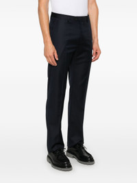 ELEVATE YOUR WARDROBE WITH OUR NAVY BLUE VIRGIN WOOL STRAIGHT-LEG TAILORED TROUSERS. THE FRONT BUTTON AND ZIP FASTENING, BELT LOOPS, AND PRESSED CREASE ADD FUNCTIONAL DETAILS TO THIS SLEEK AND POLISHED DESIGN. WITH TWO SIDE SLASH POCKETS AND TWO REAR BUTTON-FASTENING JETTED POCKETS, THESE TROUSERS OFFER BOTH STYLE AND CONVENIENCE.