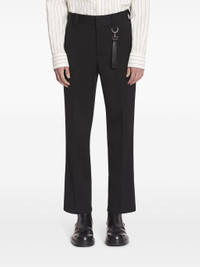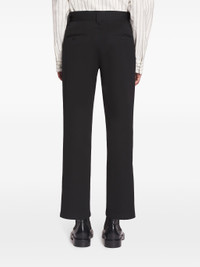 THESE BLACK STRAIGHT-LEG TROUSERS ARE PERFECT FOR ANY OCCASION. THEY FEATURE A CONCEALED REAR HOOK AND ZIP FASTENING, BELT LOOPS FOR ADDED STYLE, AND PRESSED CREASES FOR A POLISHED LOOK. THE TWO REAR WELT POCKETS PROVIDE FUNCTIONALITY AND CONVENIENCE. ELEVATE YOUR WARDROBE WITH THESE MUST-HAVE TROUSERS.