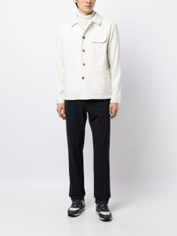 EXPERTLY CRAFTED FROM HIGH-QUALITY WHITE COTTON, THIS BUTTONED COTTON SHIRT JACKET FEATURES A CLASSIC COLLAR AND LONG SLEEVES FOR ADDED STYLE AND VERSATILITY. WITH TWO FRONT PATCH POCKETS AND A FRONT FLAP POCKET, THIS JACKET OFFERS CONVENIENCE AND FUNCTIONALITY. THE FRONT BUTTON FASTENING ENSURES A SECURE FIT, WHILE THE STRAIGHT HEM COMPLETES THE CLEAN AND SOPHISTICATED LOOK.