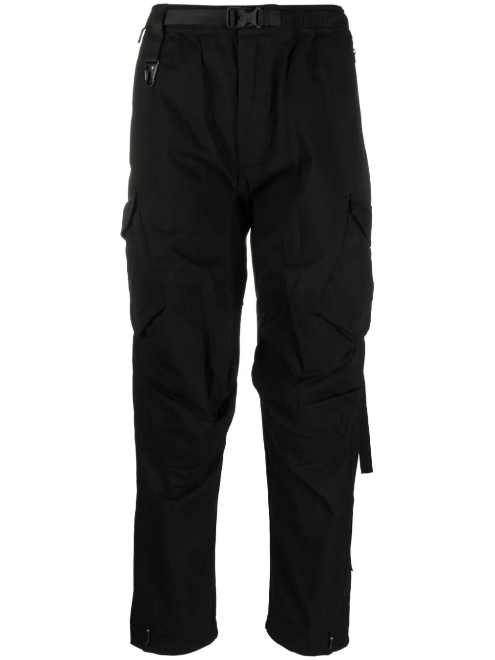 STRAIGHT-LEG COTTON BLEND TROUSERS FROM MAHARISHI FEATURING BLACK, COTTON BLEND, WATERPROOF CORDURA® MATERIAL, REAR ELASTICATED WAISTBAND, STRAIGHT LEG, CONCEALED FRONT FASTENING, BUCKLE FASTENING AND TWO SIDE CARGO POCKETS.