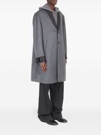 EXPERTLY CRAFTED IN A GREY WOOL TWILL WEAVE, THE CAVALRY LAYERED TWILL COAT FEATURES A UNIQUE LAYERED DESIGN AND SHAWL LAPELS FOR A MODERN AND SOPHISTICATED LOOK. THE CONTRASTING COLLAR AND FRONT BUTTON FASTENING ADD A SUBTLE TOUCH OF ELEGANCE, WHILE THE LONG SLEEVES AND TWO SIDE SLIT POCKETS PROVIDE FUNCTIONALITY. PERFECT FOR ANY OCCASION, THIS COAT EXUDES STYLE AND VERSATILITY.
