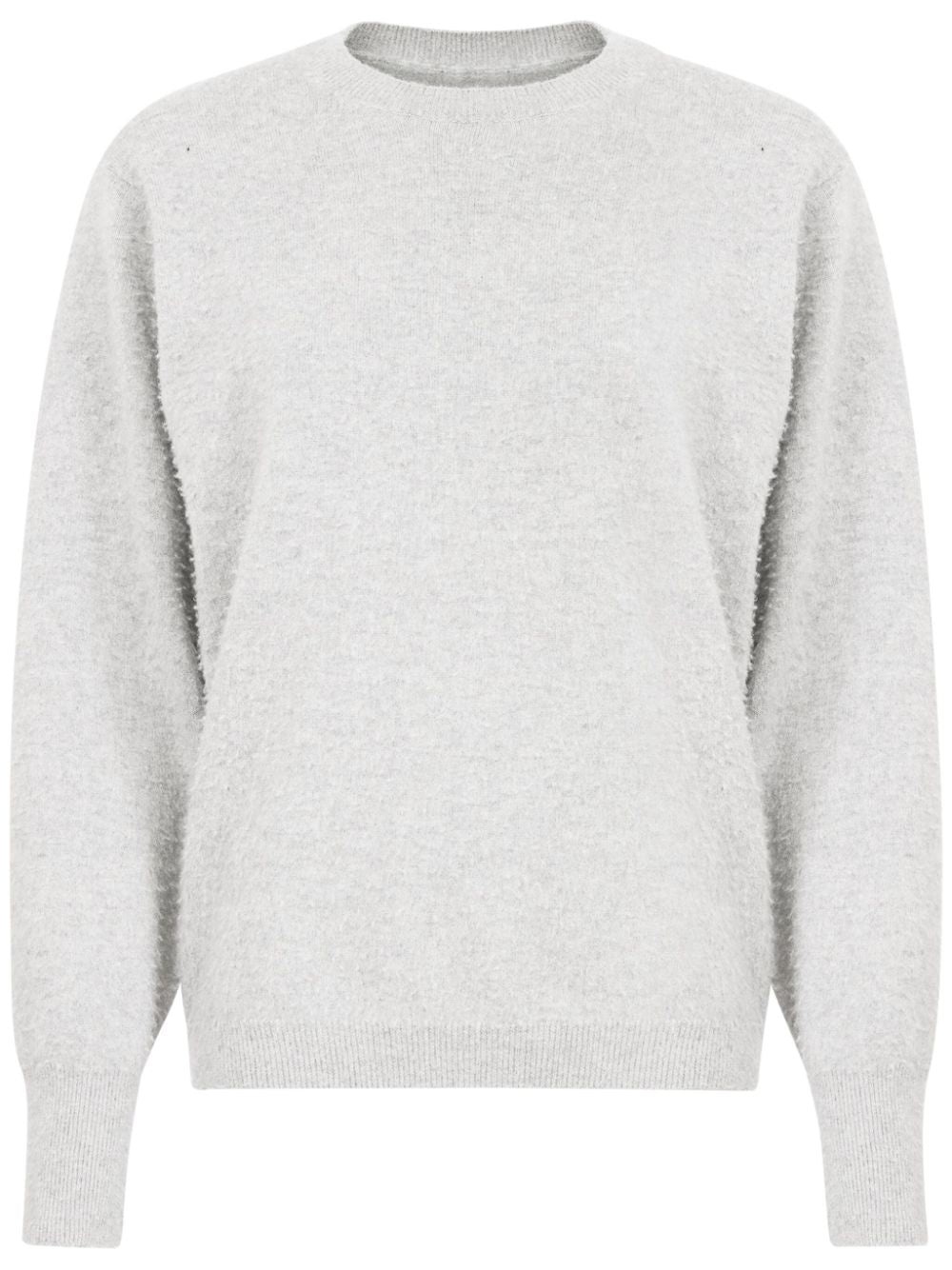 CRAFTED FROM A LUXURIOUS BLEND OF COTTON AND CASHMERE, OUR LIGHT GREY JUMPER OFFERS BOTH STYLE AND COMFORT. WITH ITS BRUSHED EFFECT, CREW NECK, AND LONG SLEEVES, IT'S PERFECT FOR ANY OCCASION. THE RIBBED TRIM AND STRAIGHT HEM ADD A TIMELESS TOUCH.