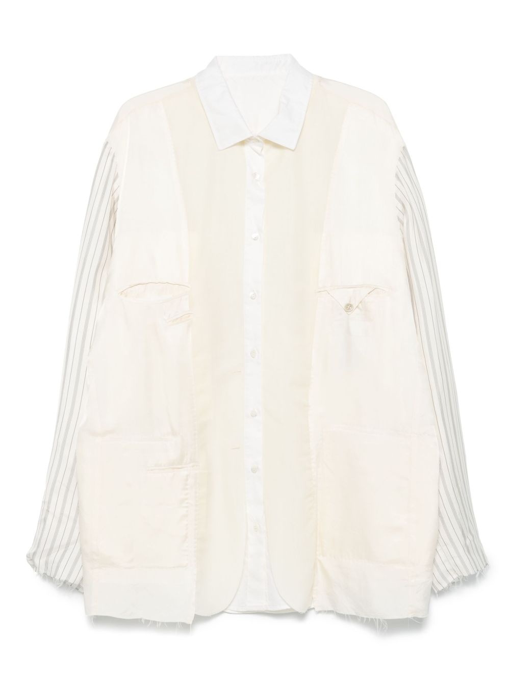 THIS ECRU PANELLED SHIRT JACKET FEATURES A FRONT BUTTON FASTENING, JETTED POCKET, BUTTONED-CUFF SLEEVES, AND INTERNAL POCKET. ITS DESIGN OFFERS BOTH STYLE AND PRACTICALITY, MAKING IT THE PERFECT ADDITION TO ANY WARDROBE. STAY ON-TREND WITH THIS VERSATILE AND FUNCTIONAL PIECE.