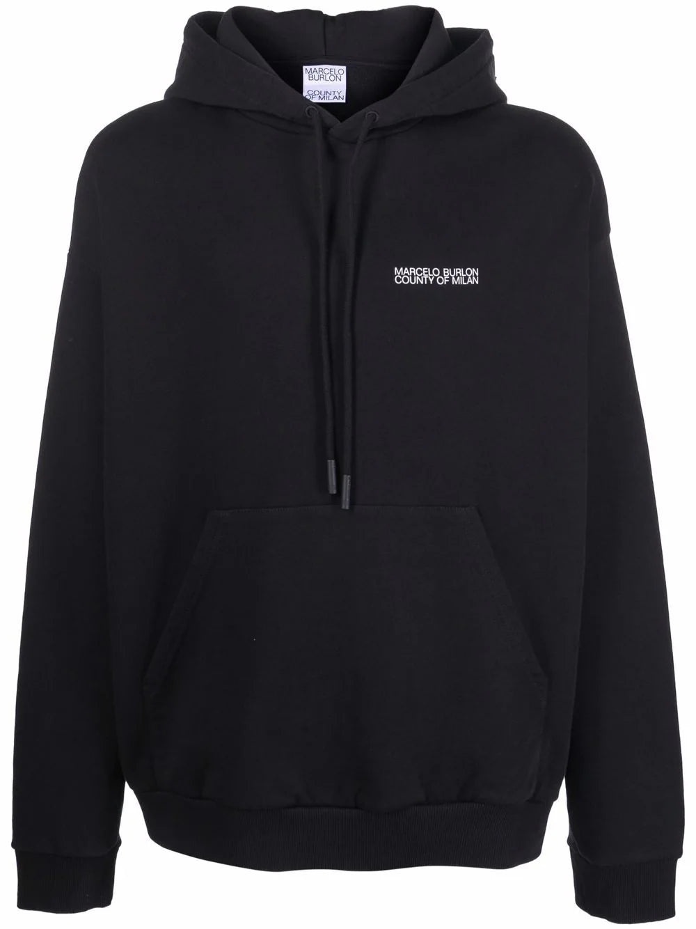 BLACK/WHITE ORGANIC COTTON CROSS-MOTIF HOODIE FROM MARCELO BURLON COUNTY OF MILAN FEATURING LOGO PRINT TO THE FRONT, SIGNATURE CROSS MOTIF, DRAWSTRING HOOD, DROP SHOULDER, LONG SLEEVES AND FRONT POUCH POCKET.