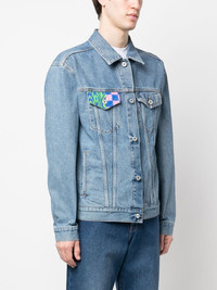 MIX&MATCH DENIM JACKET FROM MARCELO BURLON COUNTY OF MILAN FEATURING BLUE, MULTICOLOUR, COTTON, ABSTRACT PATTERN PRINT, EMBROIDERED LOGO TO THE REAR, SPREAD COLLAR, FRONT BUTTON FASTENING, LONG SLEEVES, BUTTONED CUFFS, TWO BUTTON-FASTENING CHEST POCKETS, TWO SIDE INSET POCKETS, ADJUSTABLE WAIST STRAP AND STRAIGHT HEM.