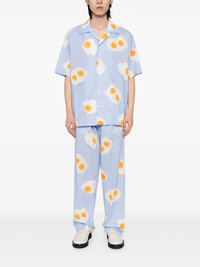 UPGRADE YOUR WARDROBE WITH OUR GRAPHIC-PRINT TROUSERS. DESIGNED WITH A SKY BLUE ELASTICATED WAISTBAND AND FRONT BUTTON FASTENING, THESE TROUSERS PROVIDE A COMFORTABLE AND STYLISH FIT. COMPLETE WITH TWO SIDE INSET POCKETS, THEY ARE PERFECT FOR ANY OCCASION.