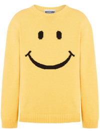 EXPERTLY CRAFTED FROM A COTTON BLEND, THIS LOGO-EMBROIDERED JUMPER BOASTS A SUNNY BANANA YELLOW HUE. THE KNITTED CONSTRUCTION OFFERS BOTH COMFORT AND DURABILITY, WHILE THE EMBROIDERED LOGO ON THE REAR ADDS A TOUCH OF SOPHISTICATION. COMPLETE WITH A PLAYFUL SMILEY FACE MOTIF, THIS JUMPER IS PERFECT FOR ADDING A POP OF COLOR TO ANY OUTFIT.