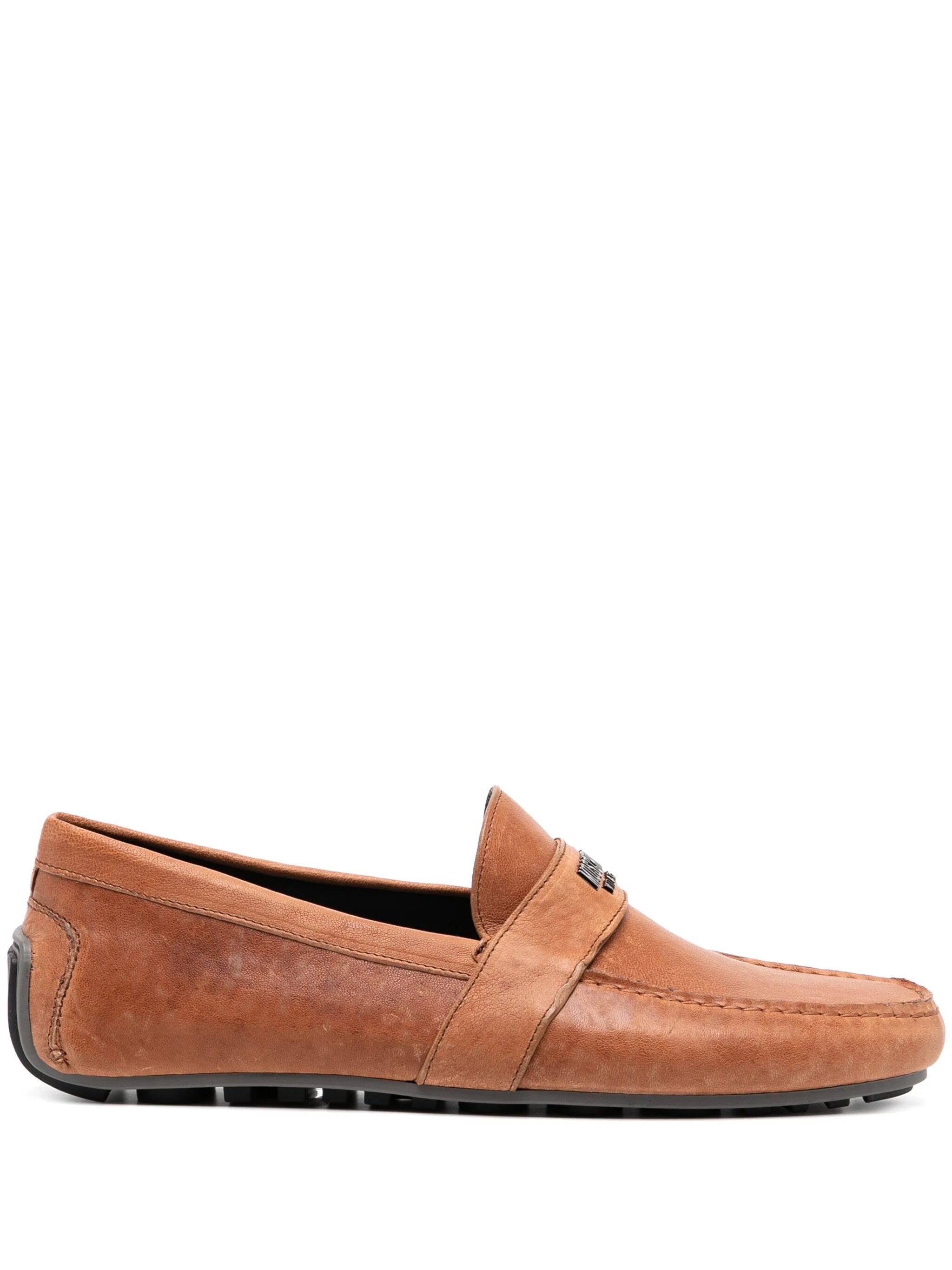 CAMEL BROWN CALF LEATHER SLIP-ON STYLE SILVER-TONE LOGO PLAQUE ROUND TOE BRANDED INSOLE CHUNKY RUBBER SOLE THIS PIECE COMES COMPLETE WITH A PROTECTIVE DUST BAG.
