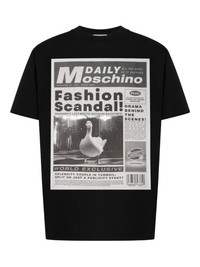 THIS BLACK COTTON T-SHIRT FEATURES AN EYE-CATCHING NEWSPAPER PRINT THAT ADDS A BOLD GRAPHIC ELEMENT TO YOUR CASUAL WARDROBE. DESIGNED WITH SHORT SLEEVES FOR COMFORT AND BREATHABILITY, IT COMBINES CLASSIC FABRIC WITH CONTEMPORARY STYLE FOR VERSATILE EVERYDAY WEAR.