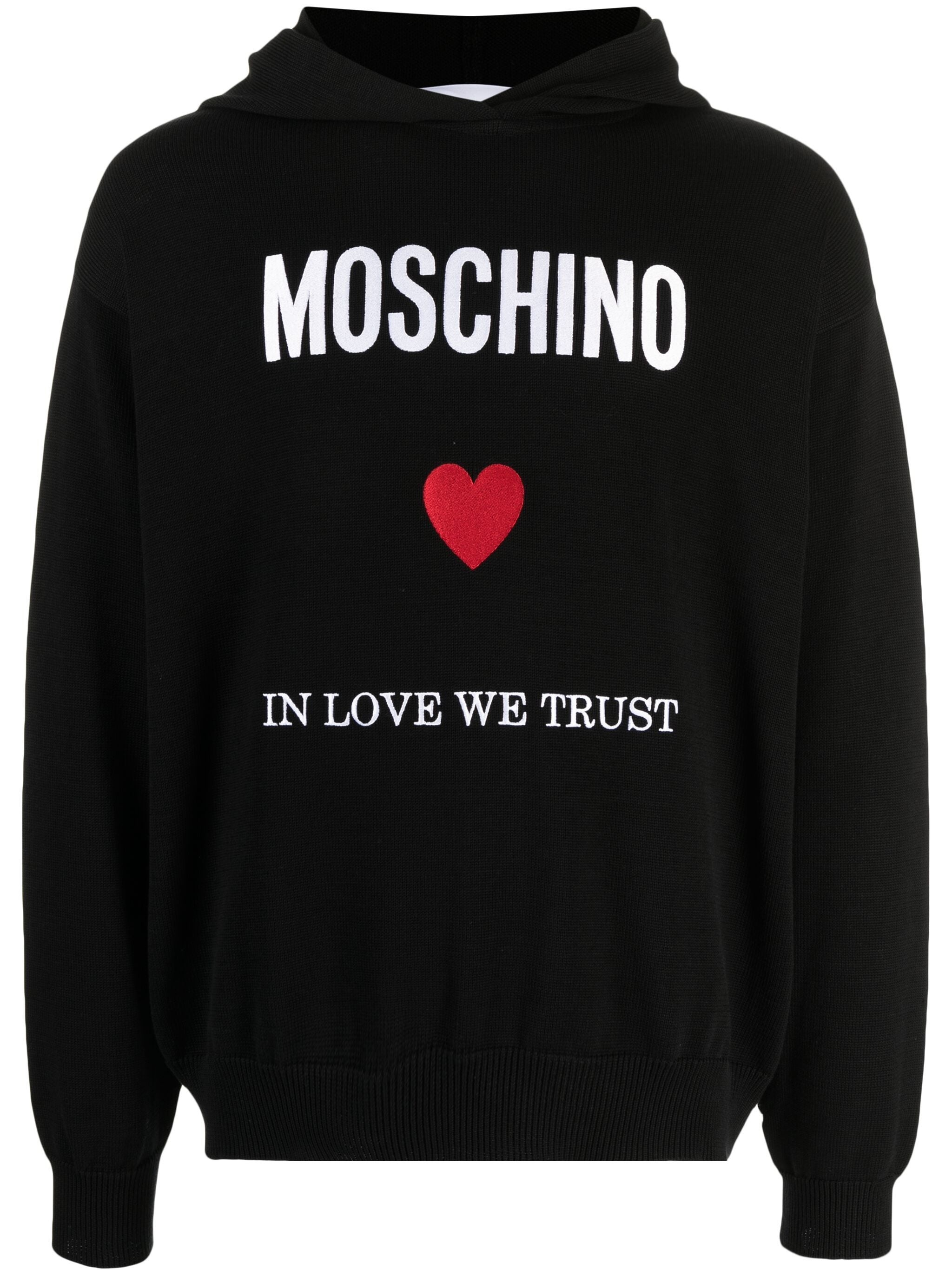 BLACK COTTON LOGO PRINT TO THE FRONT SLOGAN PRINT TO THE FRONT RIBBED EDGE SLOUCHY HOOD DROP SHOULDER LONG SLEEVES