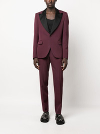 TAILORED VIRGIN-WOOL TROUSERS FROM MOSCHINO FEATURING PLUM PURPLE, VIRGIN WOOL, PLEAT DETAILING, CONCEALED FRONT BUTTON FASTENING, BELT LOOPS, SLIM CUT, TAPERED LEG, TWO SIDE SLASH POCKETS AND REAR BUTTON-FASTENING JETTED POCKET.