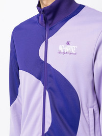COLOUR-BLOCK TRACK JACKET FROM OFF-WHITE FEATURING COTTON BLEND, COLOUR-BLOCK DESIGN, FUNNEL NECK, LOGO LETTERING, LONG SLEEVES, FRONT ZIP FASTENING, TWO SIDE SLIT POCKETS, STRAIGHT HEM AND DUSTY PURPLE.