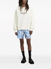 WHITE/BLACK COTTON JERSEY TEXTURE LOGO PRINT TO THE FRONT RIBBED TRIM CREW NECK LONG SLEEVES STRAIGHT HEM