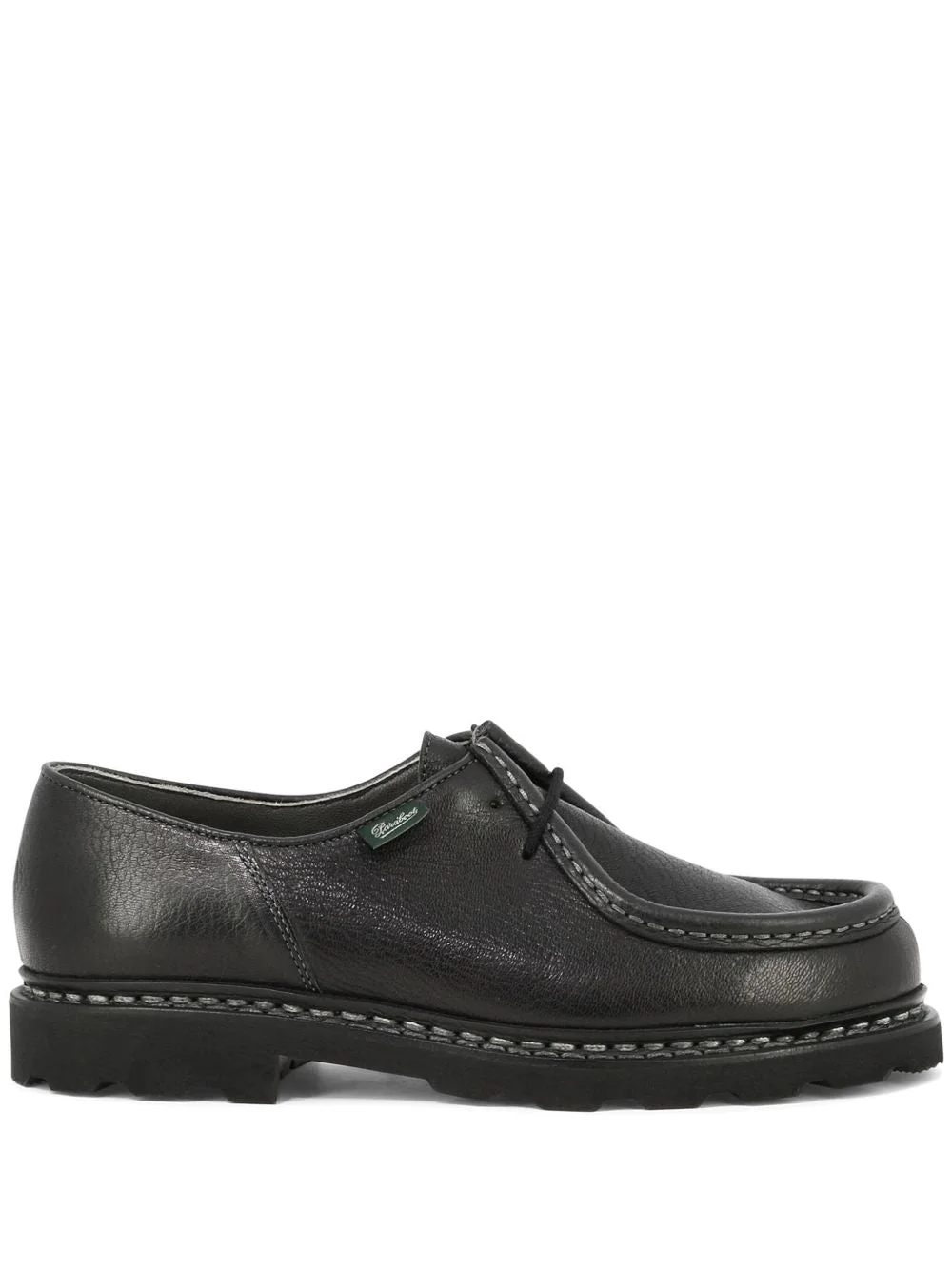 THE MICHAEL LEATHER LOAFERS COMBINE CLASSIC DESIGN WITH MODERN PRACTICALITY. CONSTRUCTED FROM SUPPLE BLACK LEATHER WITH A SUBTLE GRAINED TEXTURE, THESE LACE-UP SHOES SHOWCASE DISTINCTIVE MOC STITCHING AND A DISCREET MINI LOGO TAG FOR UNDERSTATED BRANDING. THE ROUNDED TOE DELIVERS A POLISHED LOOK, WHILE THE RELIABLE RUBBER SOLE OFFERS GRIP AND LONGEVITY. A VERSATILE CHOICE FOR PROFESSIONAL AND CASUAL WARDROBES ALIKE.