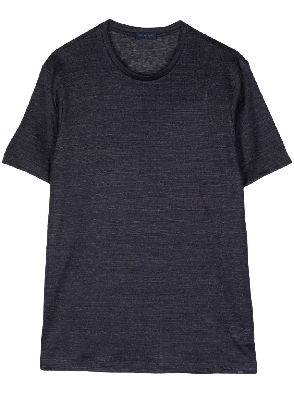 NAVY BLUE LINEN CREW NECK SHORT SLEEVES STRAIGHT HEM