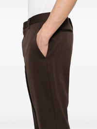 EXPERTLY CRAFTED FROM CHOCOLATE BROWN WOOL GABARDINE, OUR STRAIGHT-LEG SILM TROUSERS FEATURE A CONCEALED FLY AND BUTTON FASTENING, BELT LOOPS, AND MULTIPLE POCKETS FOR CONVENIENCE. THE PRESSED CREASE AND FULL-LENGTH STRAIGHT LEG SLIM CUT OFFER A POLISHED AND SOPHISTICATED LOOK.