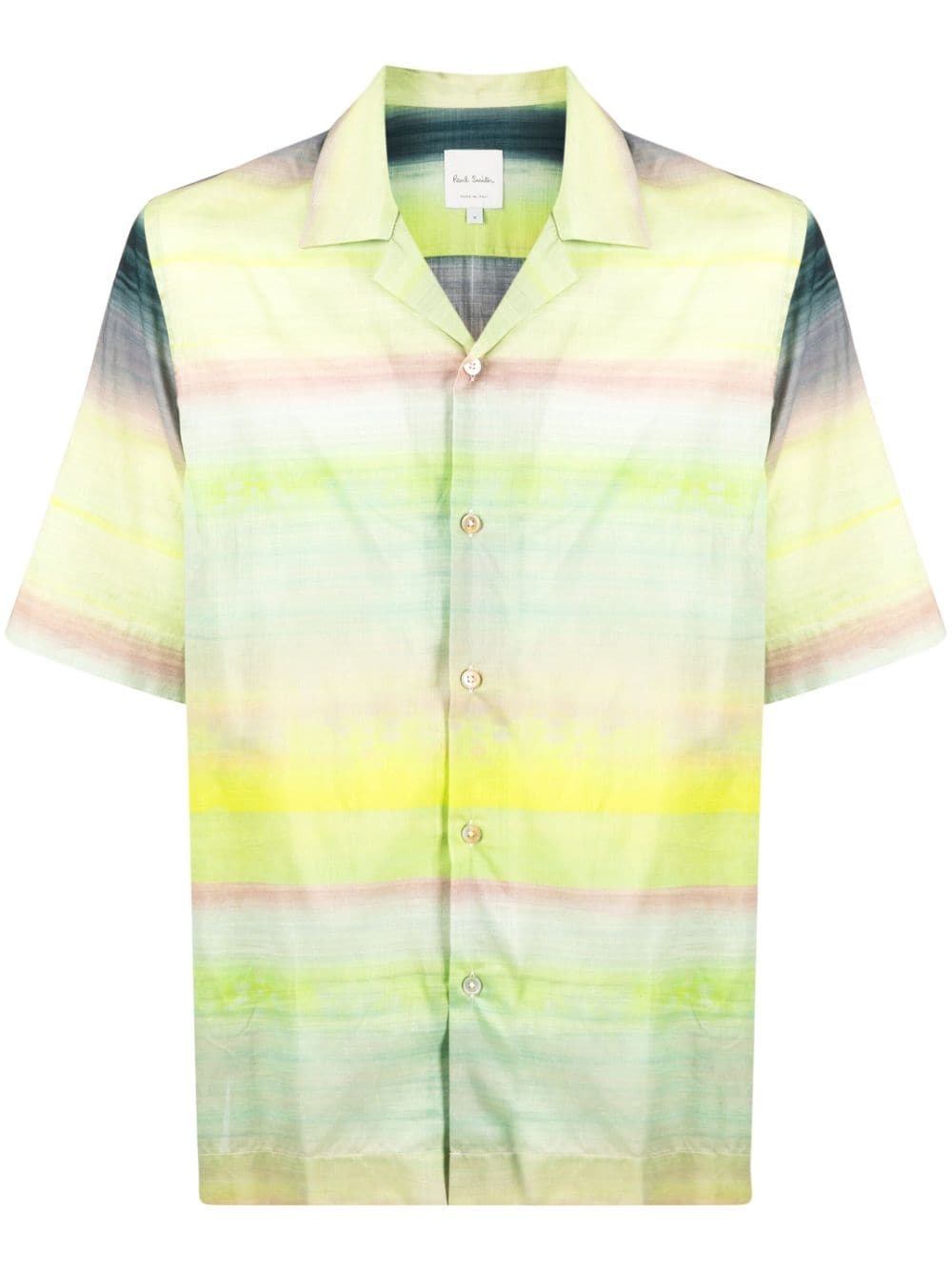 'UNTITLED STRIPE' SHORT-SLEEVE SHIRT FROM PAUL SMITH FEATURING GREEN, COTTON, HORIZONTAL STRIPE PATTERN, NOTCHED COLLAR, SHORT SLEEVES, FRONT BUTTON FASTENING AND STRAIGHT HEM.