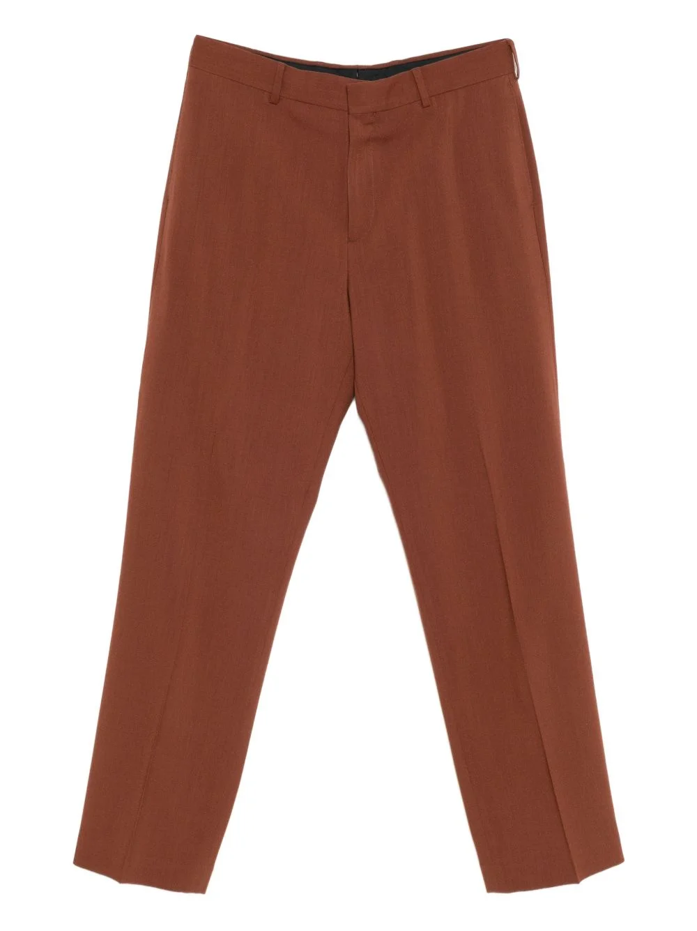 THE WOOL STRAIGHT-LEG TROUSERS DELIVER REFINED TAILORING IN A SOPHISTICATED RUST BROWN TONE. DUAL FASTENING WITH FRONT BUTTON AND ZIP ENSURES SECURE CLOSURE AND ADJUSTABLE FIT, WHILST TWO SIDE SLASH POCKETS PROVIDE PRACTICAL STORAGE WITHOUT DISRUPTING THE CLEAN SILHOUETTE. THE STRAIGHT-LEG CUT OFFERS TIMELESS APPEAL THAT FLATTERS VARIOUS PROPORTIONS AND COORDINATES EFFORTLESSLY WITH BLAZERS, KNITWEAR, AND STRUCTURED TOPS. WOOL CONSTRUCTION PROVIDES NATURAL TEMPERATURE REGULATION, DURABILITY, AND SUBTLE TEXTURE THAT ELEVATES EVERYDAY STYLING. ENGINEERED FOR LONGEVITY, THESE TROUSERS RESIST WRINKLES AND MAINTAIN THEIR SHAPE THROUGH REGULAR WEAR. AN INVESTMENT PIECE THAT ANCHORS PROFESSIONAL AND SMART-CASUAL WARDROBES WITH UNDERSTATED ELEGANCE.