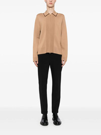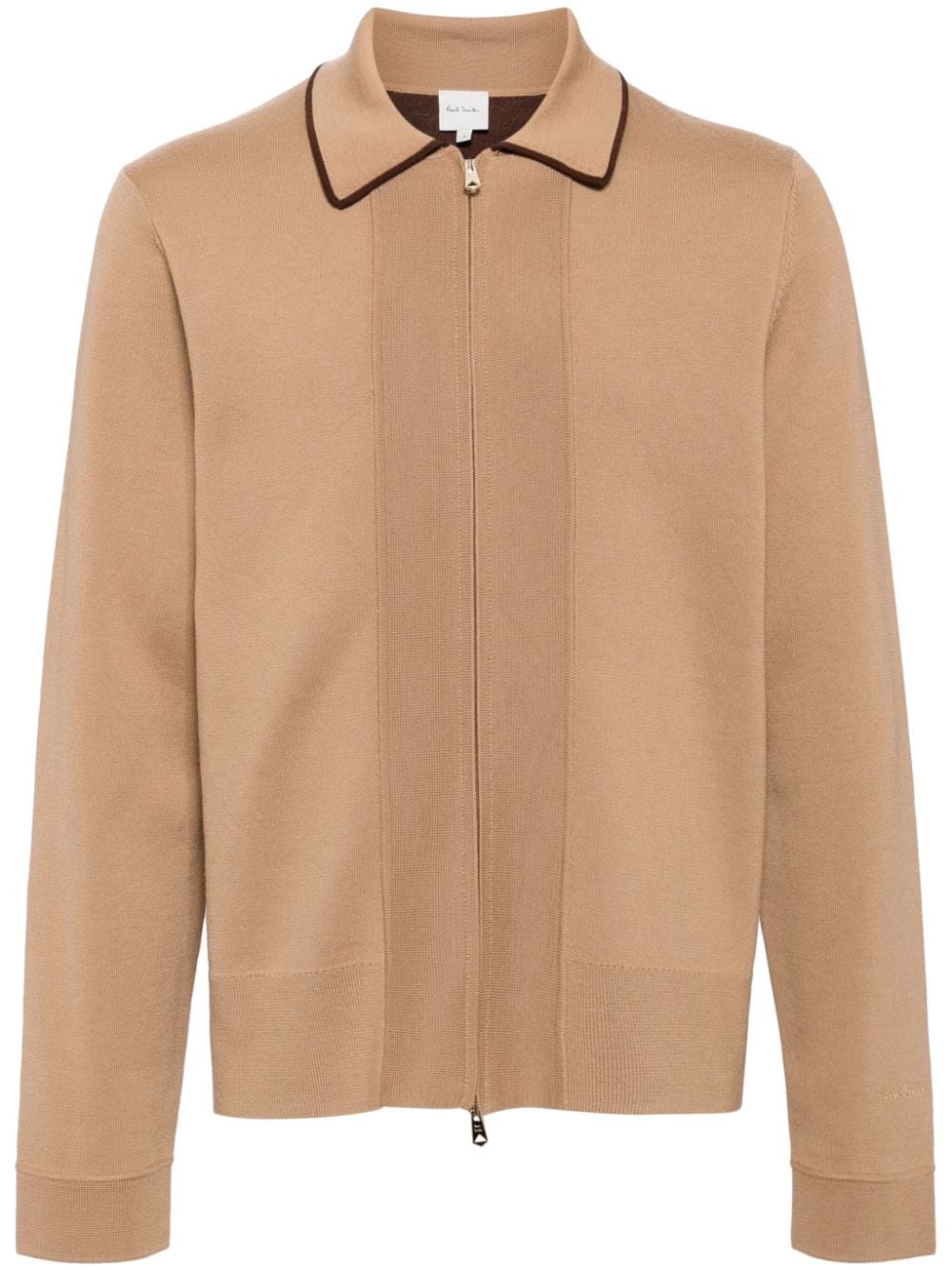 PEANUT BROWN WOOL-COTTON BLEND ZIP FASTENING EMBROIDERED LOGO AT THE SLEEVE PIPED-TRIM DETAILING LONG SLEEVES CLASSIC COLLAR RIBBED HEM