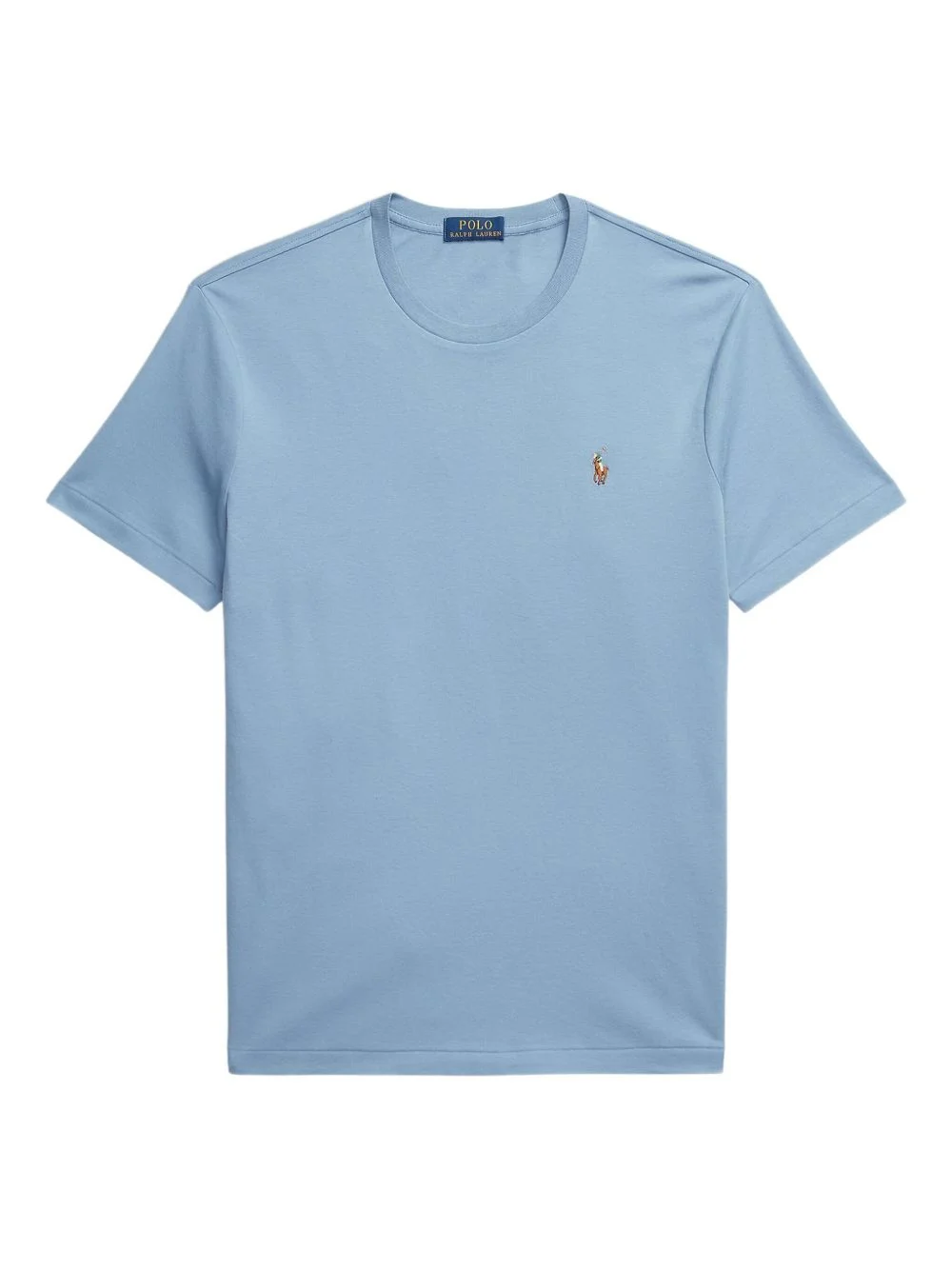 THIS BABY BLUE COTTON T-SHIRT FEATURES A CLASSIC ROUND NECK AND SHORT SLEEVES FOR A TIMELESS, COMFORTABLE FIT. THE STRAIGHT HEM ENSURES A CLEAN SILHOUETTE, WHILE THE SIGNATURE POLO PONY MOTIF ADDS A SUBTLE YET DISTINCTIVE BRAND DETAIL. PERFECT FOR LAYERING OR WEARING ON ITS OWN, IT COMBINES SIMPLICITY WITH REFINED STYLE.