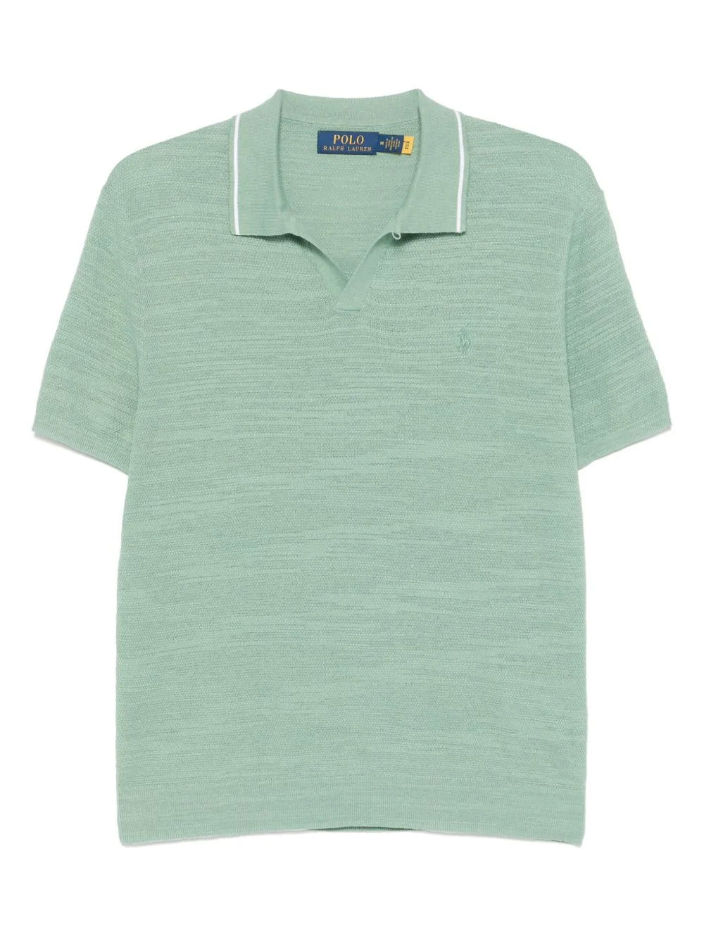 THIS LIGHT GREEN POLO SHIRT FEATURES A FRONT BUTTON FASTENING AND SHORT SLEEVES FOR A COMFORTABLE, CLASSIC FIT. RIBBED CUFFS AND HEM ENHANCE DURABILITY AND STRUCTURE, MAKING IT A REFINED CHOICE FOR VERSATILE, EVERYDAY WEAR.