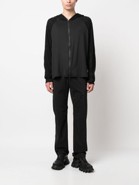 ZIP-DETAILS FLARED TROUSERS FROM POST ARCHIVE FACTION FEATURING BLACK, COTTON BLEND, ZIP DETAILS, HIGH-WAISTED, REAR ELASTICATED WAISTBAND, FRONT BUTTON AND ZIP FASTENING AND FLARED.