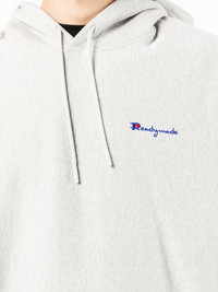 LIGHT GREY COTTON EMBROIDERED LOGO LONG-SLEEVE HOODIE FROM READYMADE FEATURING EMBROIDERED LOGO AT THE CHEST, DRAWSTRING HOOD, DROP SHOULDER, LONG SLEEVES, RIBBED CUFFS, FRONT POUCH POCKET AND RIBBED HEM.