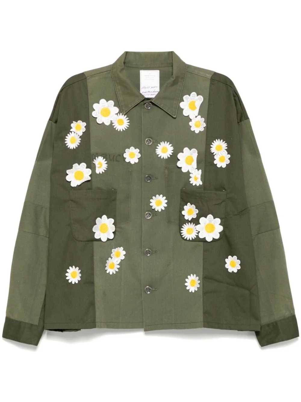 THIS OLIVE GREEN PANELLED SHIRT BOASTS BOTH CLASSIC STYLE AND INTRICATE FLORAL EMBROIDERY. THE FRONT BUTTON FASTENING AND BUTTONED CUFFS PROVIDE A POLISHED LOOK, MAKING IT A VERSATILE ADDITION TO ANY WARDROBE. ELEVATE YOUR STYLE WITH THIS ELEGANT AND TIMELESS PIECE.