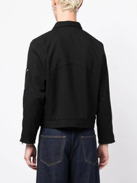 SAMBAC BOMBER JACKET FROM RHUDE FEATURING BLACK, TWILL WEAVE, CLASSIC COLLAR, FRONT TWO-WAY ZIP FASTENING, PANELLED DESIGN, FRONT ZIP FASTENING POCKETS, LONG SLEEVES, CUFF ZIPS, STRAIGHT HEM AND CROPPED.